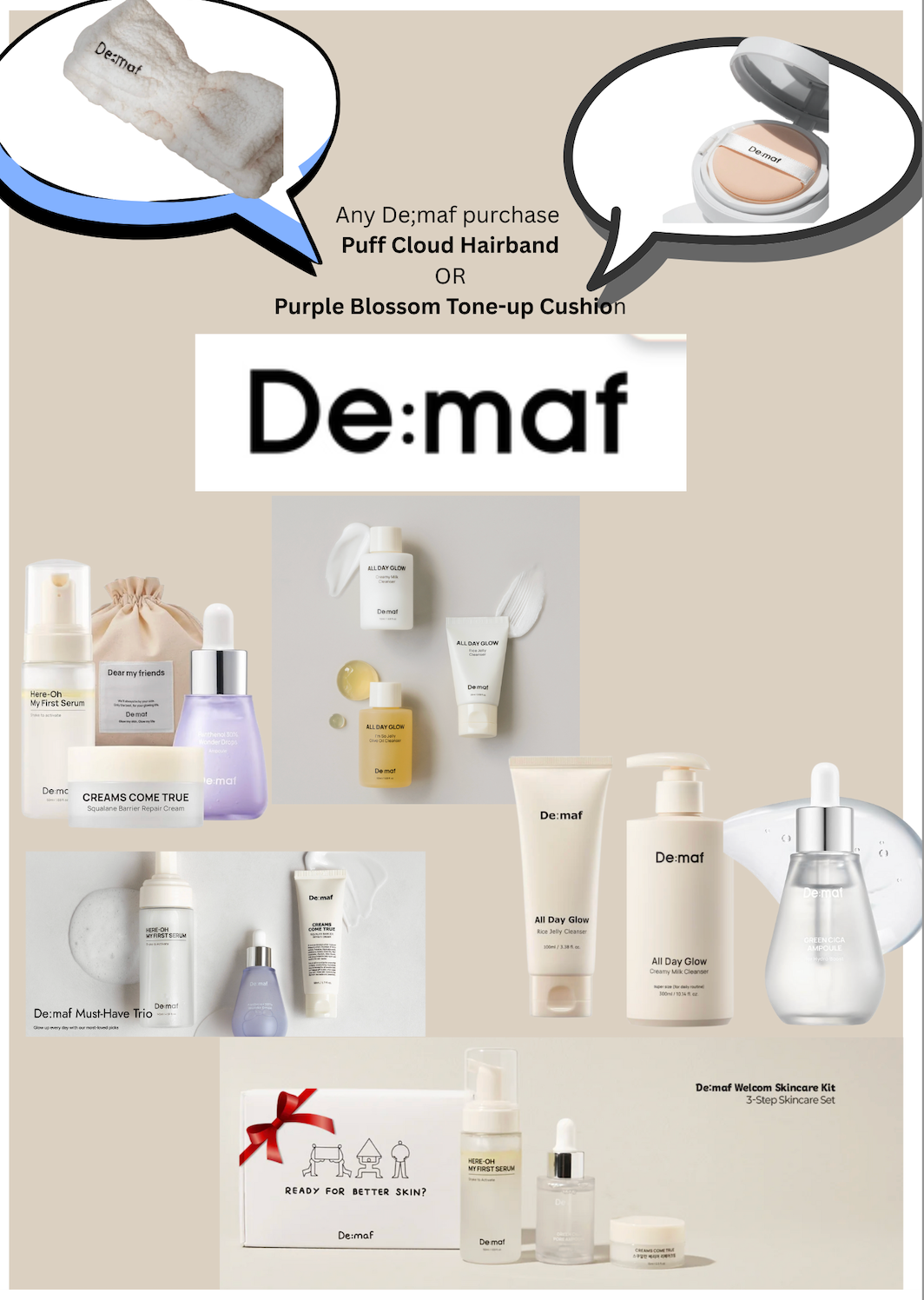 Give Away Puff Cloud Hairband or Tone-up Cushion with any De:maf purchase (limited quantity)