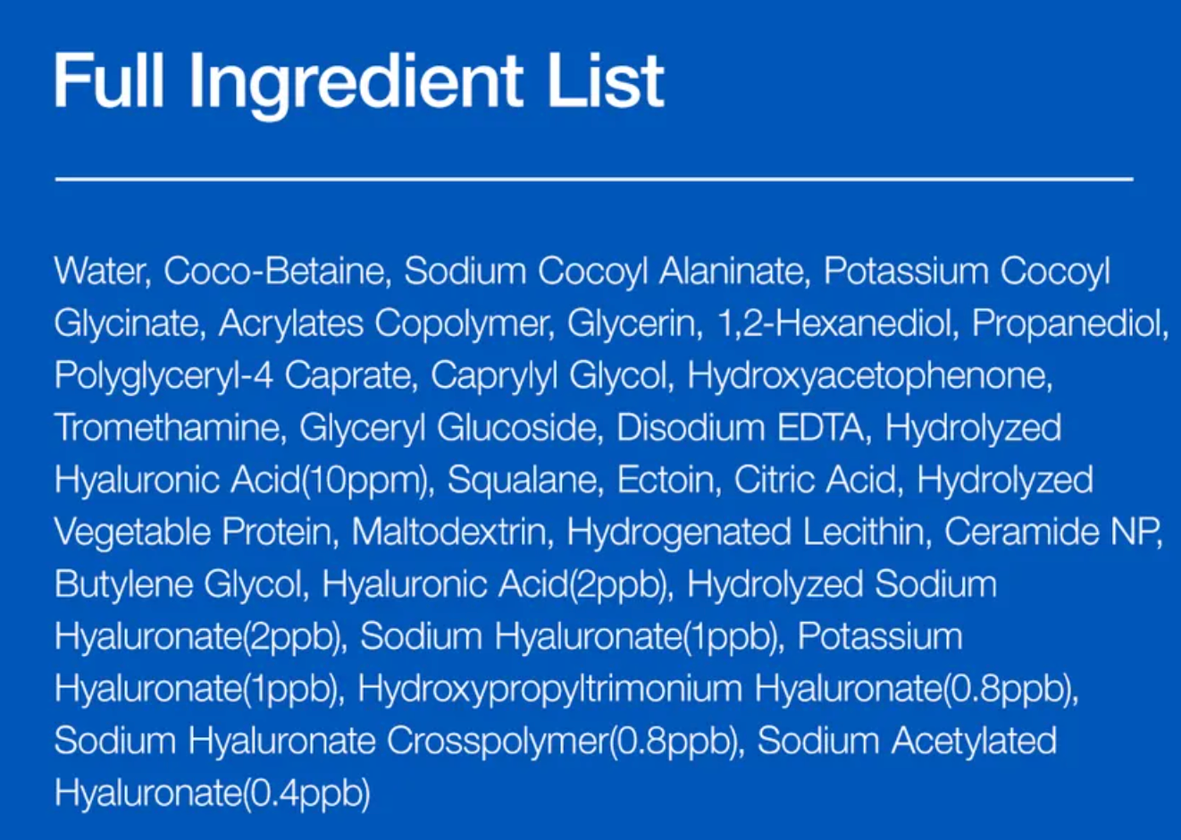 - A hydrating gel cleanser formulated with 8 kinds of Hyaluronic Acids and Squalane to deliver hydration to skin and prevent moisture loss, while deeply cleansing pores.