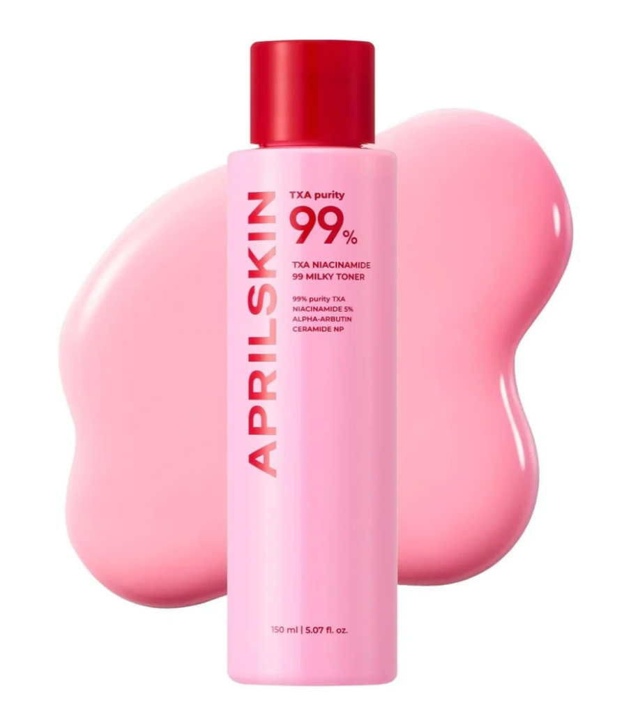 April Skin TXA Niacinamide 99 Milky Toner brightens your skin with highly concentrated whitening care.
