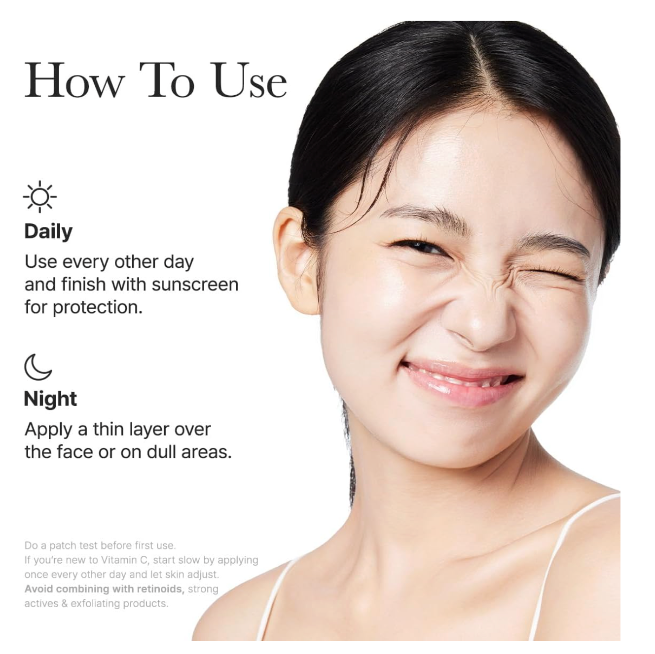 - Apply an appropriate amount on clean skin before the mositurizer step of skincare routine. Gently tap to aid absorption.