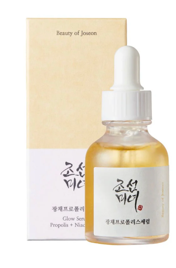 The Beauty of Joseon (BOJ) Glow Serum: Propolis + Niacinamide is a honey-like serum enriched with natural hanbang (traditional Korean herbal medicine) ingredients to fight acne and pore problems. Naturally anti-inflammatory propolis, together with tamanu oil, betanie salicylate and tea tree extract, help calm and soothe acne without irritating the skin. Niacinamide and lotus seed extract are also present to brighten and rejuvenate for clearer and glowing skin.