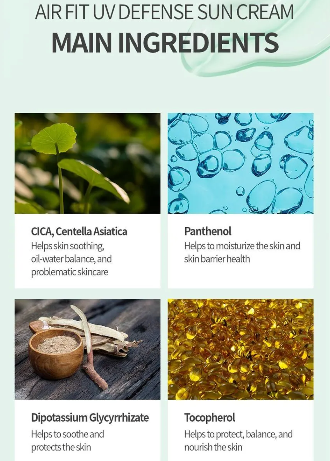 Benton Air Fit UV Defense Sun Cream helps protect skin.
