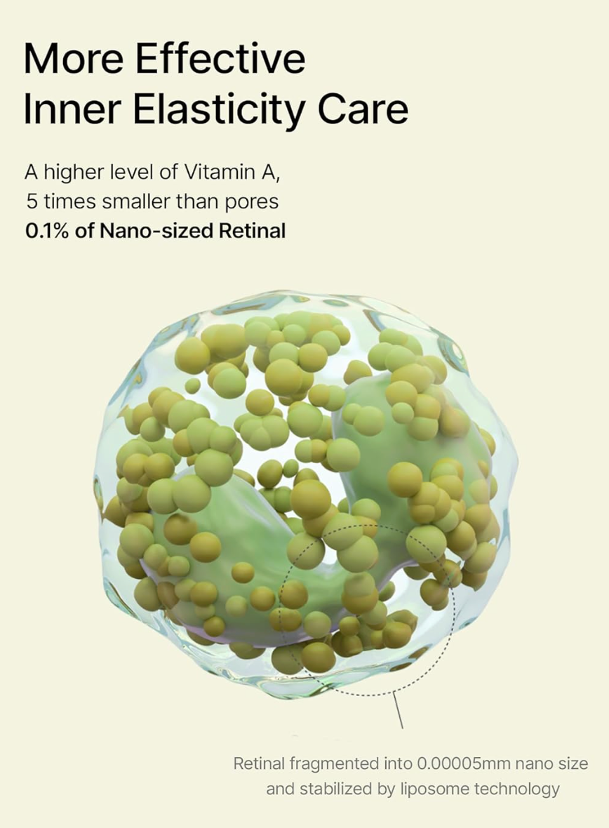- Infused with 0.1% retinal, the advanced form of retinol, combined with A-Shot, designed to directly penetrate pores and enhance absorption, delivers retinal deep into the skin to target wrinkles and enlarged pores, promoting smoother and firmer skin.