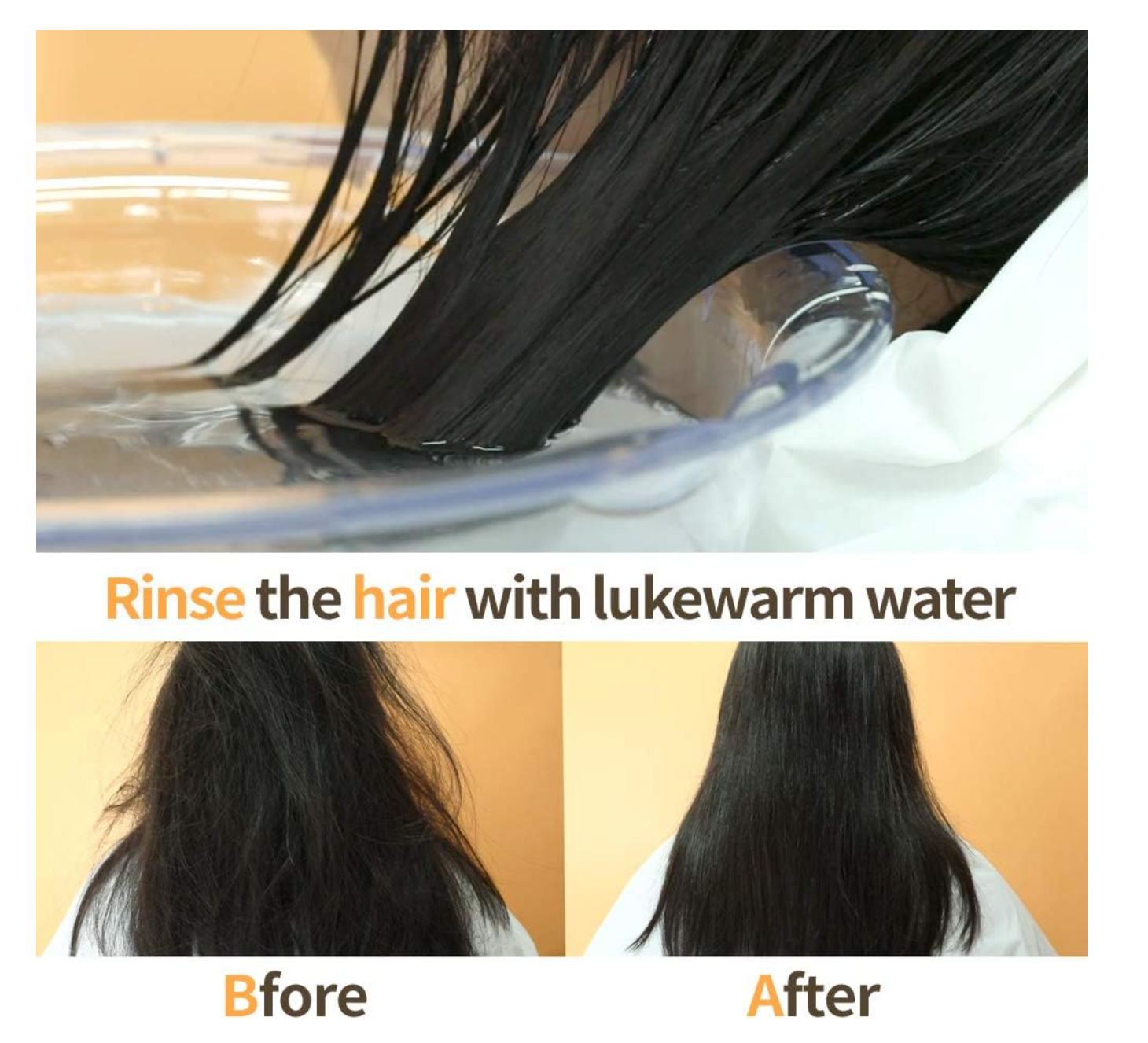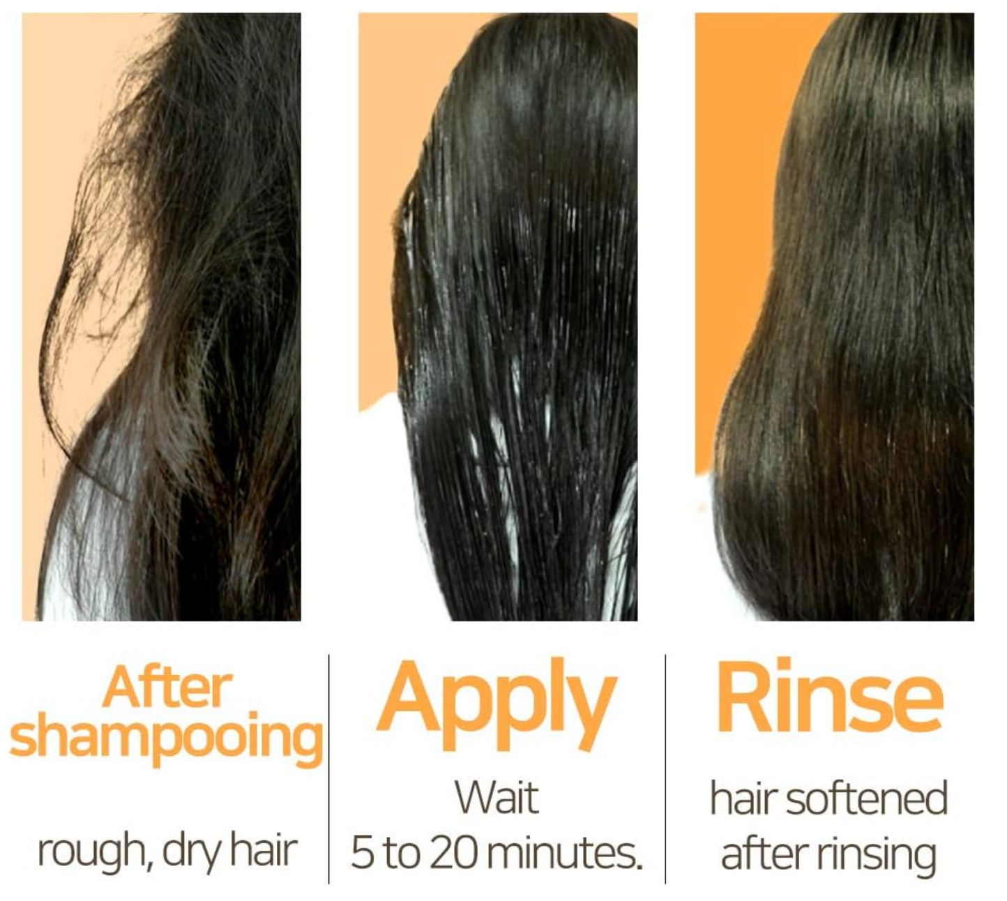 After shampooing and towel-drying hair, apply hair treatment on hair. You may use a shower cap to wrap hair after applying hair treatment. After 5-20 minutes, rinse off with water.