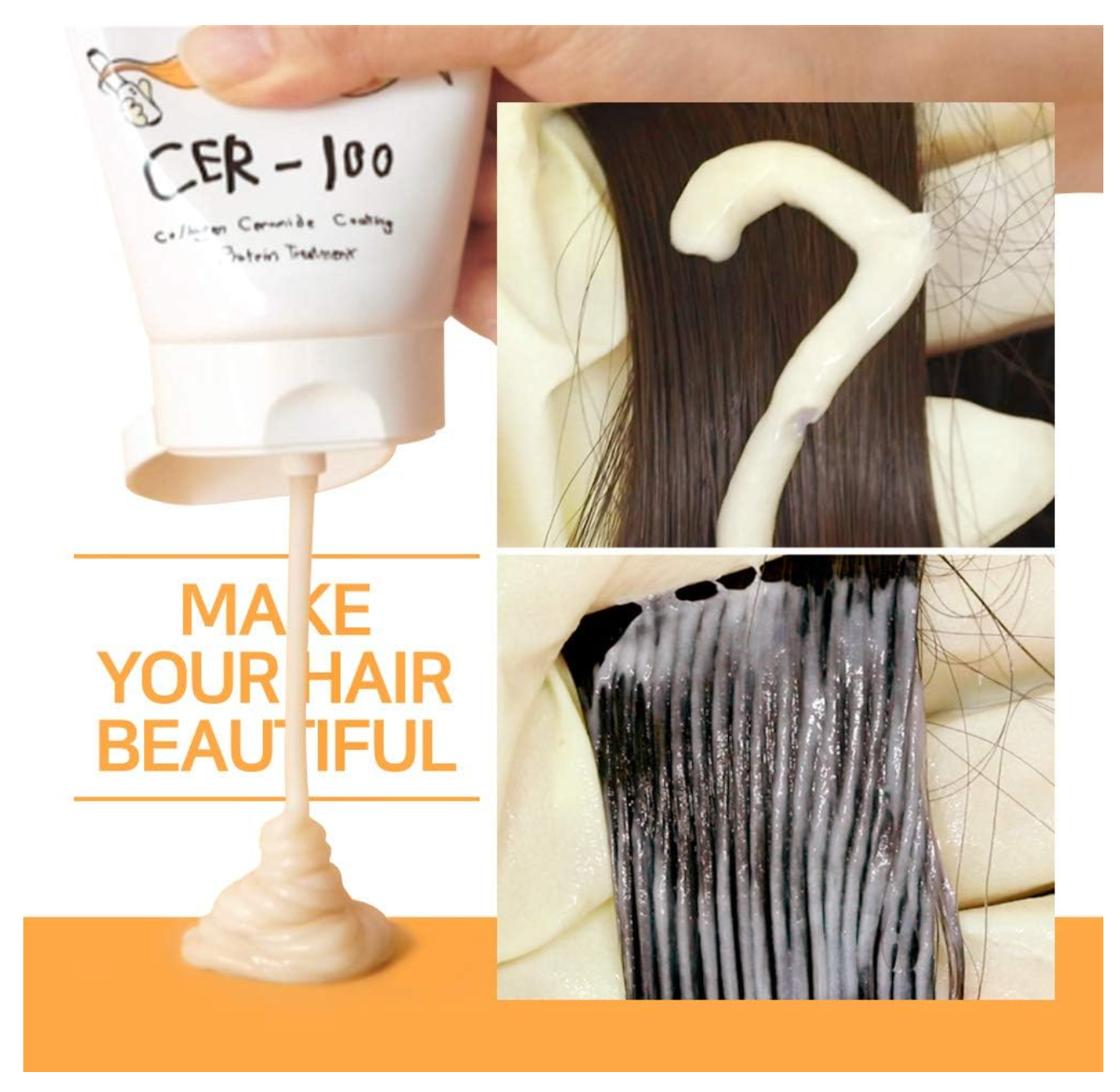 The Elizavecca CER-100 Collagen Ceramide Coating Protein Treatment is a hair treatment that repairs damaged cuticles and hair, delivering hydration to improve hair health while leaving a glossy finish. Plant proteins, pig-derived Collagen and Ceramides work together to repair damaged cuticles and fights frizz, split ends, breakage, hair damaged by dyeing or frequent styling, and dryness. Herbal extracts, Hydrolysed Milk and Silk Amino Acids are also present to help relieve stress and stimulate scalp to improve hair elasticity and softness.