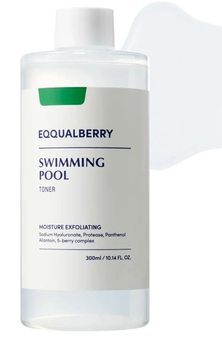 The Eqqualberry Swimming Pool Toner is a daily facial toner that dives deep into the skin for lasting moisture, while gently exfoliating away dead skin cells and unclogging pores. Enriched with 5 Berry Complex with anti-ageing properties to deliver antioxidant and nourishing properties, while naturally-derived Protease enzymes gently exfoliate skin, minimising pores and removing dead skin cells, leaving your complexion clearer and more refined.