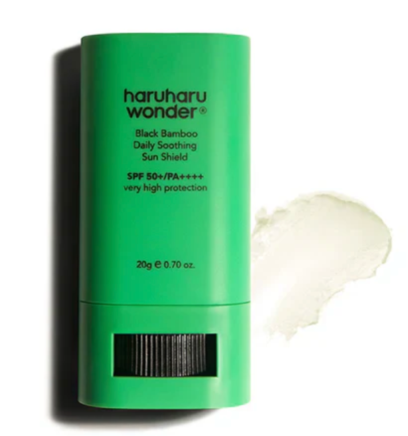 HARUHARU WONDER Black Bamboo Daily Soothing Sun Shield, a convenient stick sunscreen featuring Fermented Bamboo Shoot Extract, Betaine, Niacinamide, and Adenosine. This vegan chemical formula glides on clear with a cooling sensation and sets to a semi-matte finish. Perfect for oily skin types seeking moisturising sun protection without white cast.