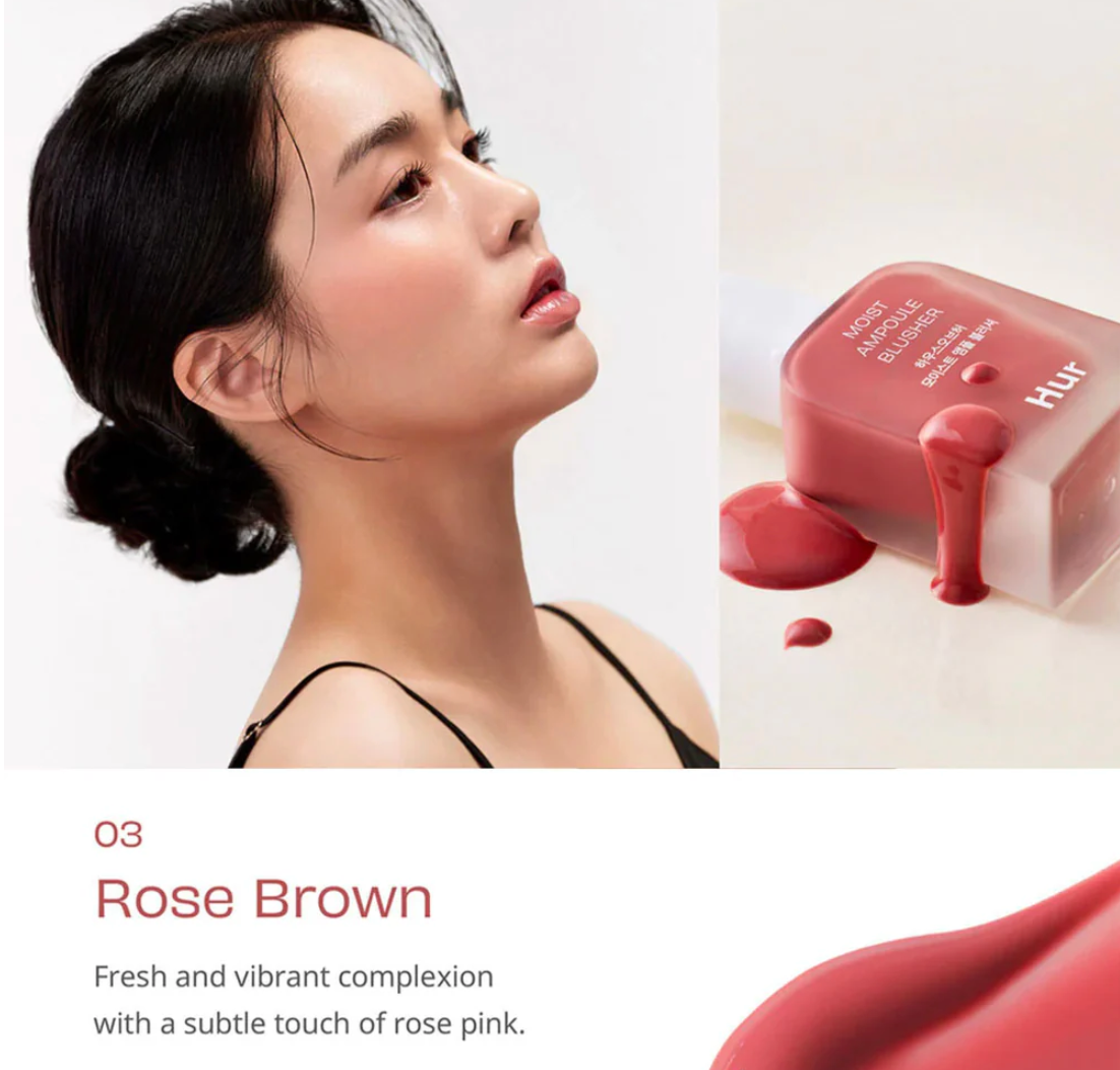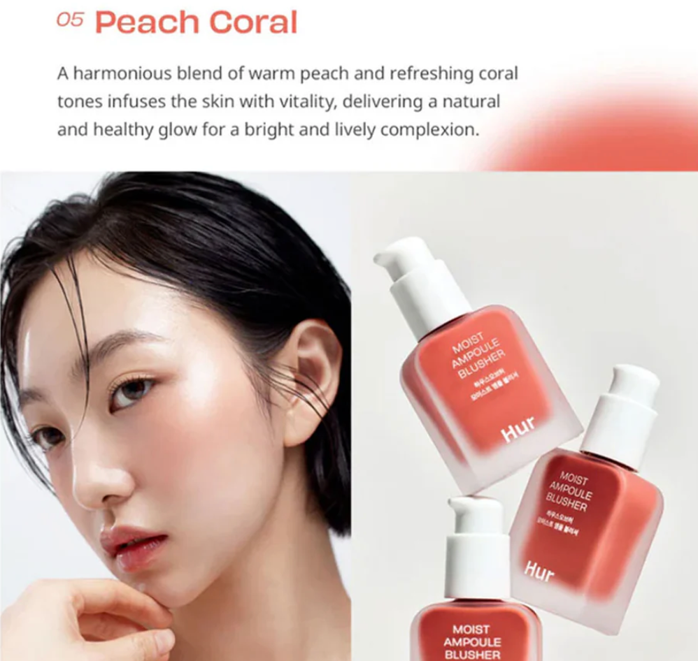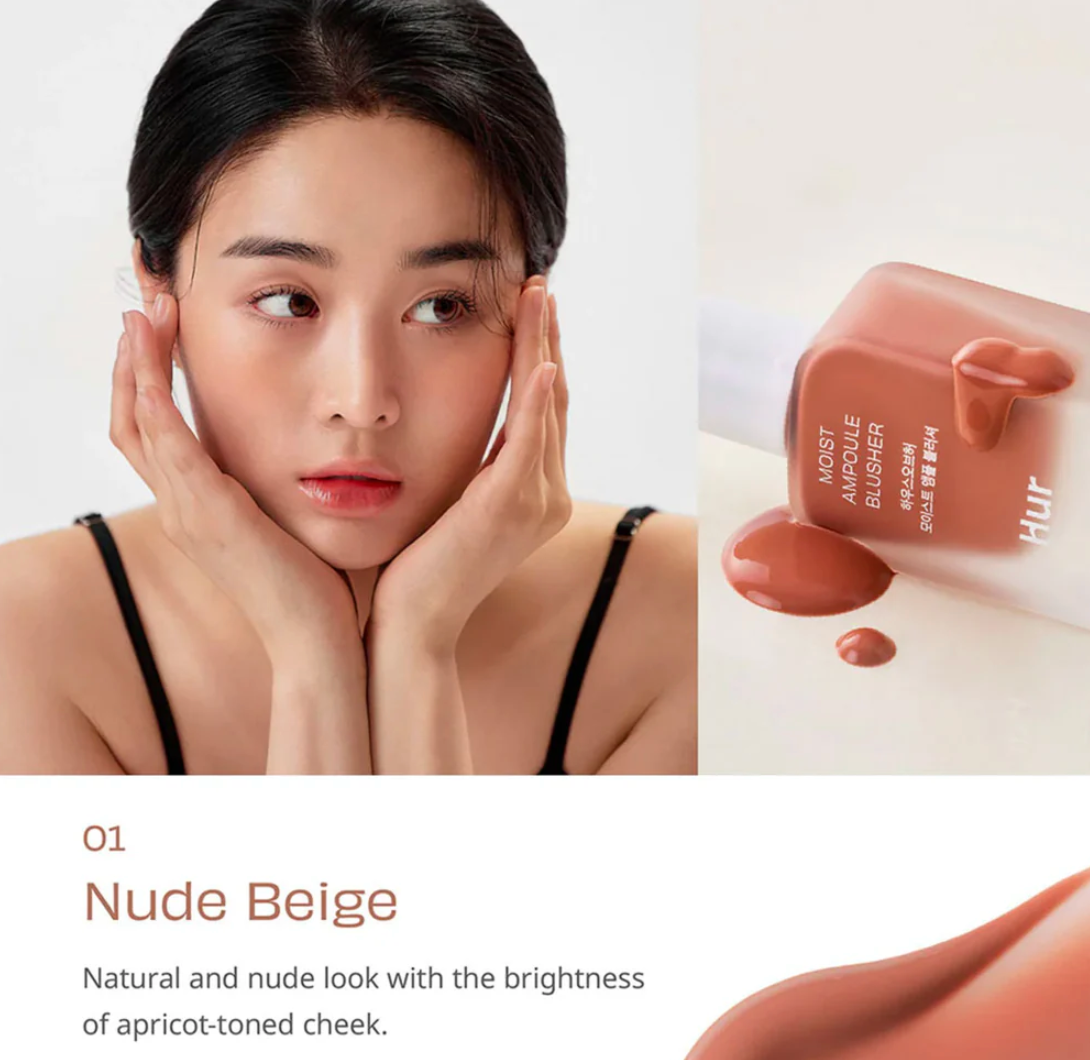 The House of Hur Moist Ampoule Blusher is a light and hydrating ampoule-type blusher, similar to an essence, that gently seeps into the skin, creating a clear complexion with watercolour-like pigmentation in one touch. This revolutionary formula combines an airy, lightweight texture with a hydrating essence blend, providing your skin with a luminous and long-lasting glow. Can be used comfortably all day long without stickiness, keeping the skin feeling and looking refreshed!