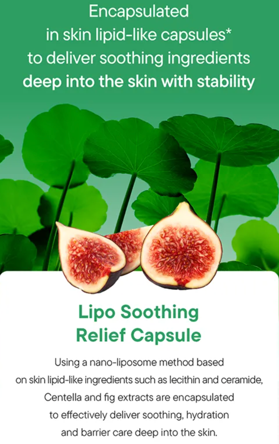 - Infused with Lipo Soothing Relief Capsule with Centella Asiatica Extract and Ficus Carica (Fig) Fruit Extract to help offer care for skin barrier in deep layers of skin.