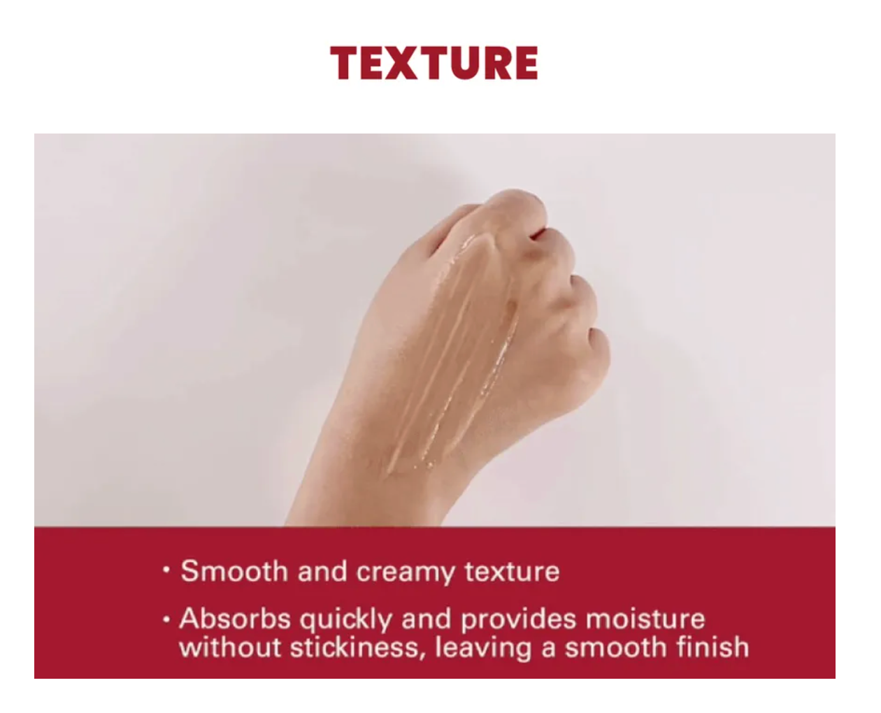 - Features a smooth and creamy texture and offers instant absorption, and provides moisture without stickiness, leaving a smooth finish.