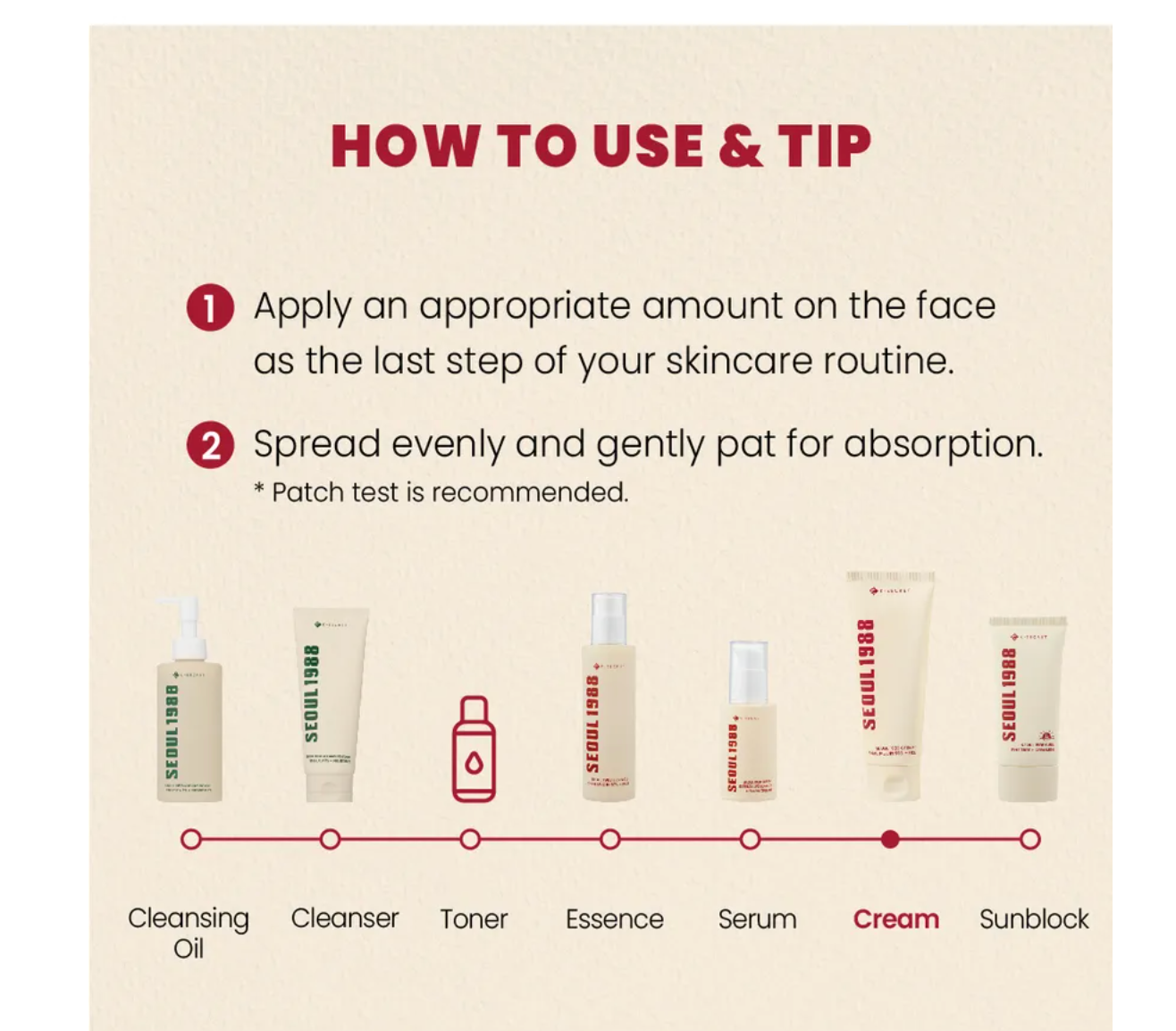 - Apply a moderate amount to the skin evenly as the last step of your skincare routine and gently pat it for better absorption.