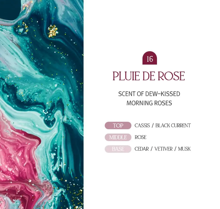 • Middle - Peach Rose, Jasmine, Lily of the Valley