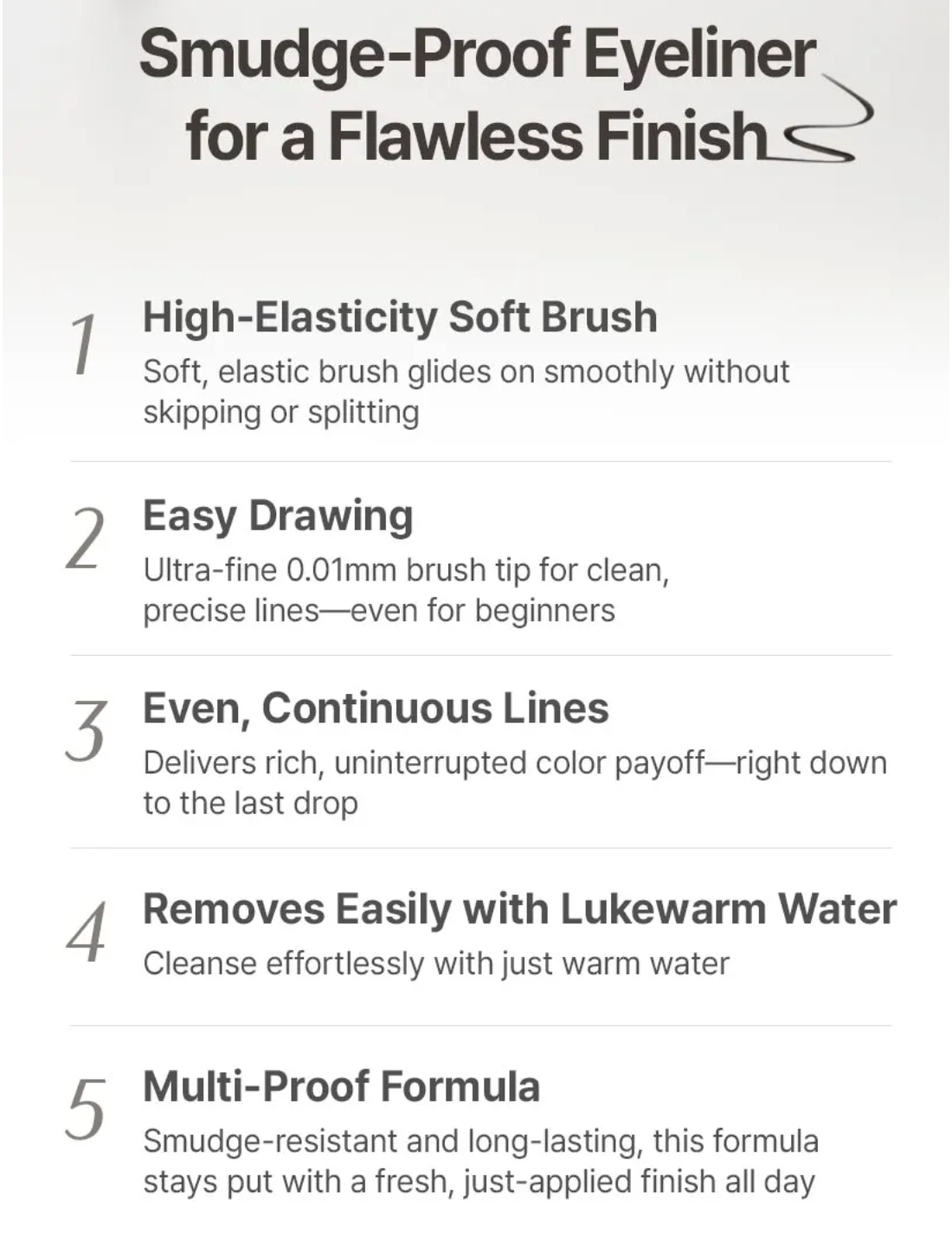 - Shake eyeliner 2-3 times before applying.