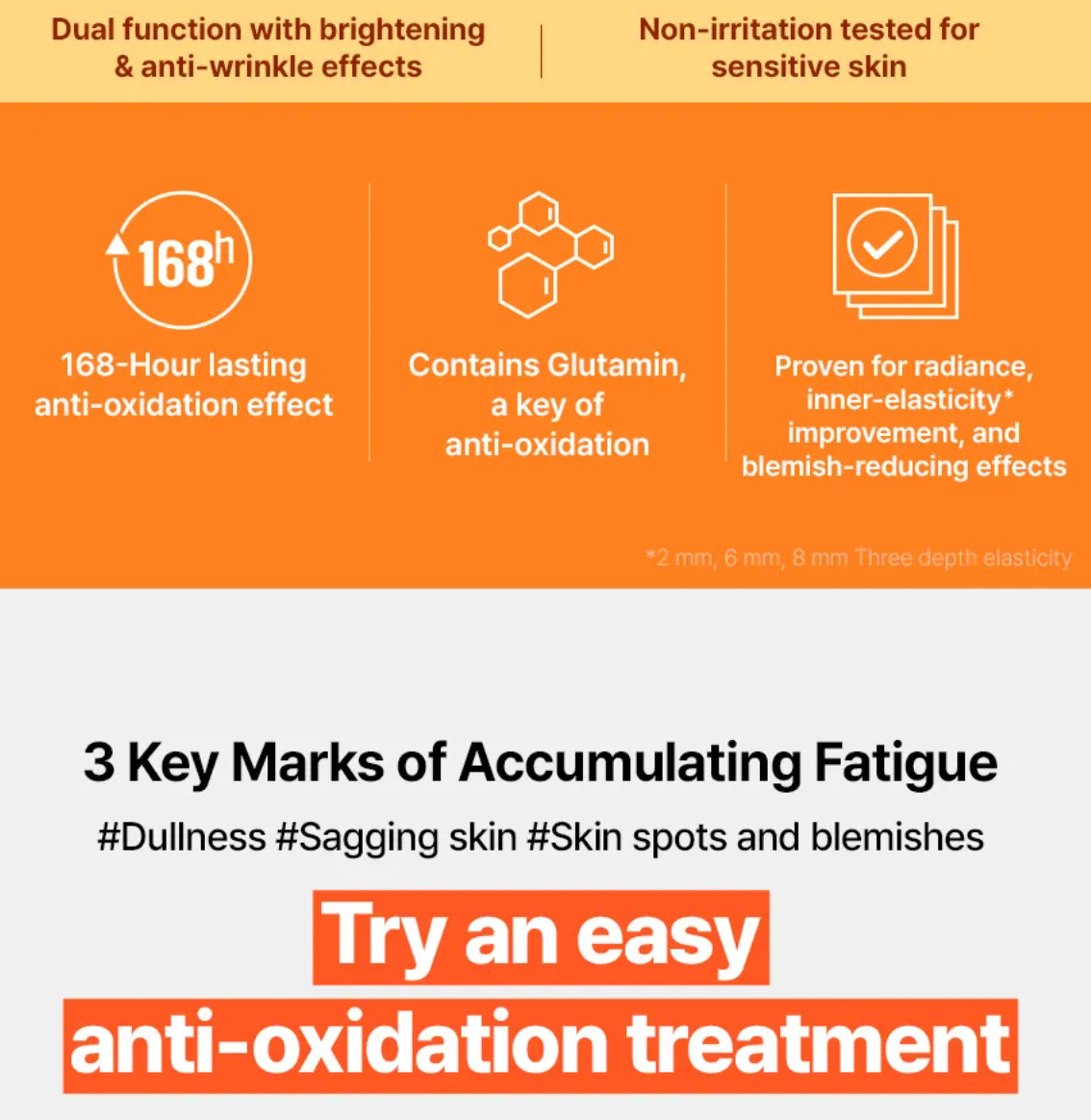- A nourishing serum delivers longlasting anti-oxidation effect with 35,250ppm Glutamin™.