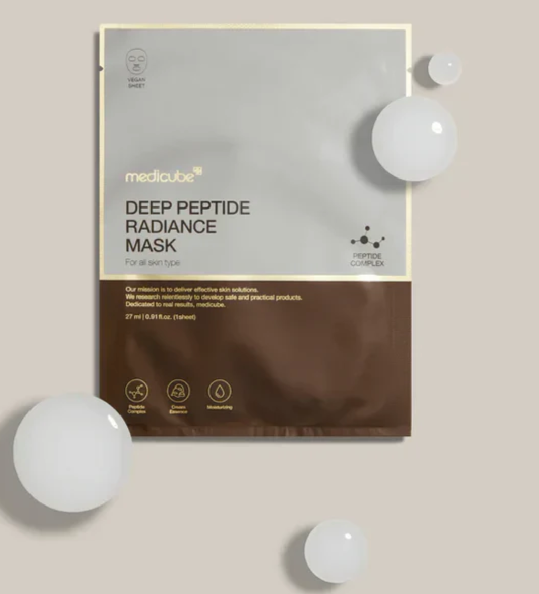 Medicube Deep Peptide Radiance Mask is sheet mask enriched with Quadruple Peptide that helps boost hydration and elasticity for gleaming skin.