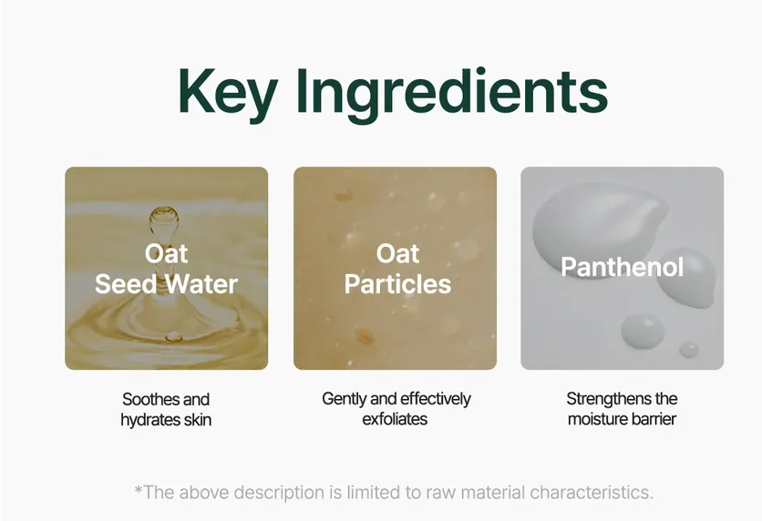 Glycerin, Sodium Cocoyl Isethionate, Avena Sativa (Oat) Seed Water, Water, Prunus Amygdalus Dulcis (Sweet Almond) Seed Meal, Hydroxypropyl Starch Phosphate, Sodium Methyl Cocoyl Taurate, 1,2-hexanediol, Avena Sativa (Oat) Kernel Flour, Zea Mays (Corn) Starch, Kaolin, Sodium Chloride, Butylene Glycol, Hectorite, Ethylhexylglycerin, Alcohol Denat., Cellulose, Sodium Cocoyl Glycinate, Sodium Lauroyl Glutamate, Helianthus Annuus (Sunflower) Seed Oil, Zea Mays (Corn) Germ Oil, Caprylic/capric Triglyceride, Glyceryl Behenate/eicosadioate, Glyceryl Stearate, Glyceryl Stearate Se, Polyglyceryl-10 Behenate/eicosadioate, Phellodendron Amurense Bark Extract, Dextrin, Theobroma Cacao (Cocoa) Seed Extract, Avena Sativa (Oat) Kernel Extract, Dipotassium Glycyrrhizate, Squalane, Panthenol, Sodium Hyaluronate Crosspolymer, Sodium Benzoate, Lactobacillus Ferment, Potassium Sorbate, Sodium Phytate, Dipropylene Glycol, Citric Acid, Pentylene Glycol, Oryza Sativa (Rice) Starch, Avena Sativa (Oat) Peptide, Triticum Aestivum (Wheat) Peptide, Glycine Max (Soybean) Polypeptide, Tripropylene Glycol, Dimethyl Isosorbide, Sodium Dna, Beta-glucan, Pentaerythrityl Tetra-di-t-butyl Hydroxyhydrocinnamate