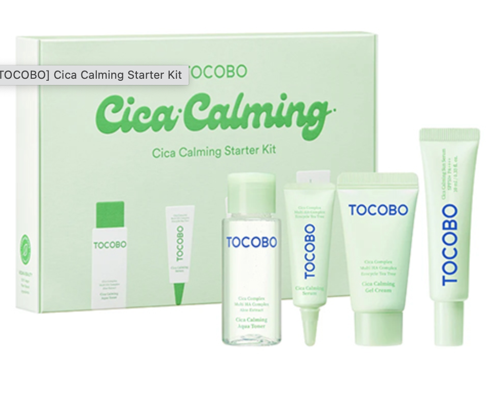 TOCOBO Cica Calming Aqua Toner hydrates, soothes, and firms the skin with ingredients like Camellia Sinensis Leaf Water, Mentha Aquatica Leaf Extract, Aloe Ferox Leaf Extract, and Niacinamide, leaving skin refreshed and suitable for sensitive skin.