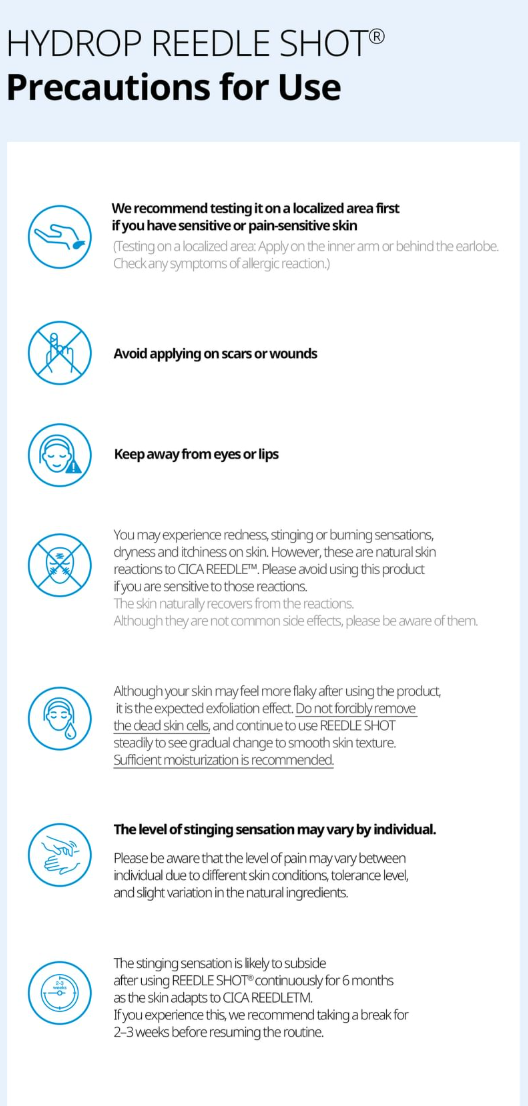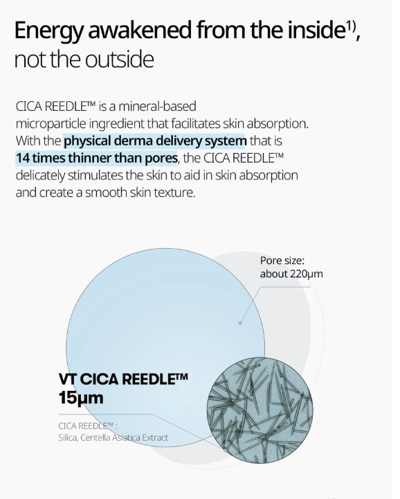 - The delicate design of the micro-sized Cica Reedle facilitates skin absorption and awakens the skin condition to restore healthy skin.